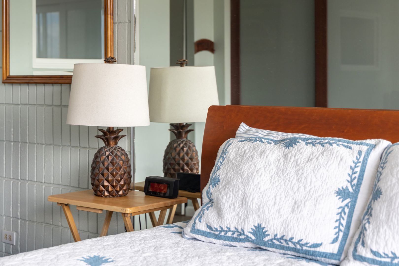 Step inside to an open, airy living space enhanced by beautiful new flooring throughout. This unit features a rare double lanai, allowing natural light to flood both the living room and bedroom. From the living room, enjoy breathtaking ocean views right from your couch, or step onto the front lanai to take in the sights and sounds of the surf just moments away. Whether you’re sipping your morning coffee or unwinding after a day at the beach, the scenery never gets old.