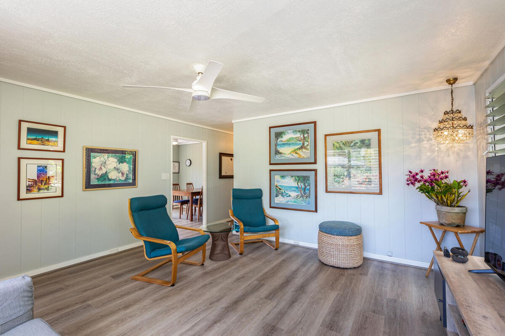 Tucked away in the serene valley between Puhi and Kipu lies a truly special property, home to just two residences. One of these is a cozy 2-bedroom, 1-bath unit offering breathtaking views of Mt. Haupu.