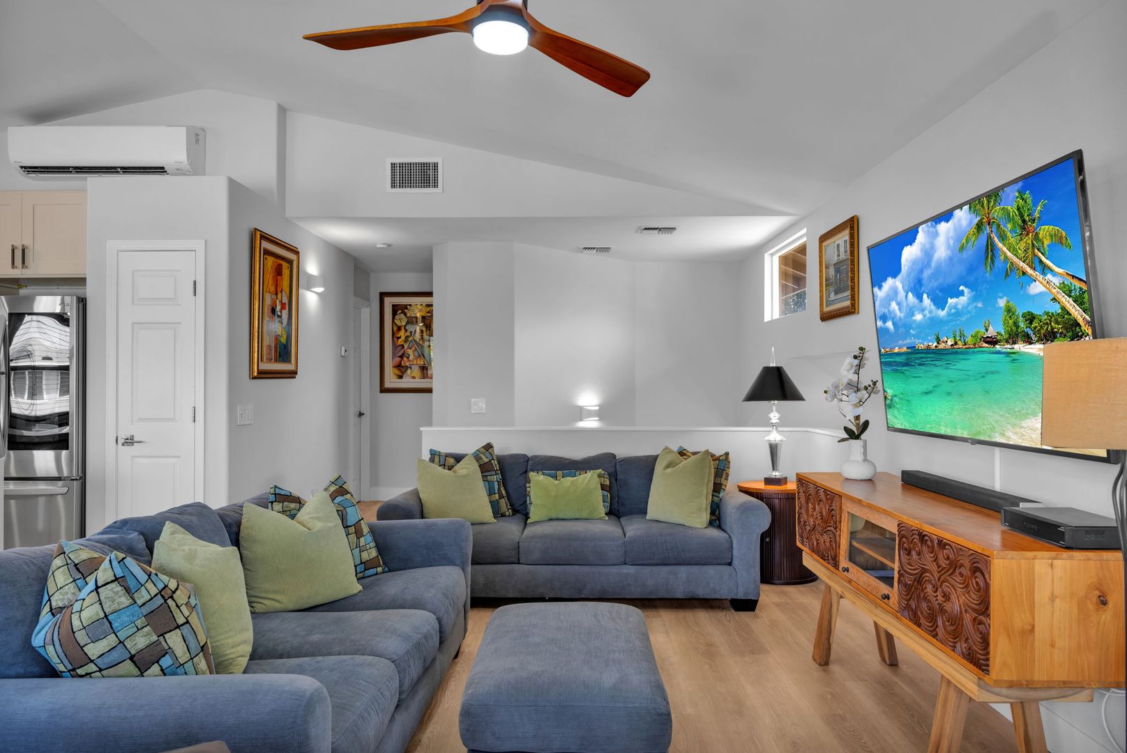 Private Saltwater Pool: Enjoy the newly refinished pool deck, ample outdoor entertaining space, and a custom volcano-inspired water feature.