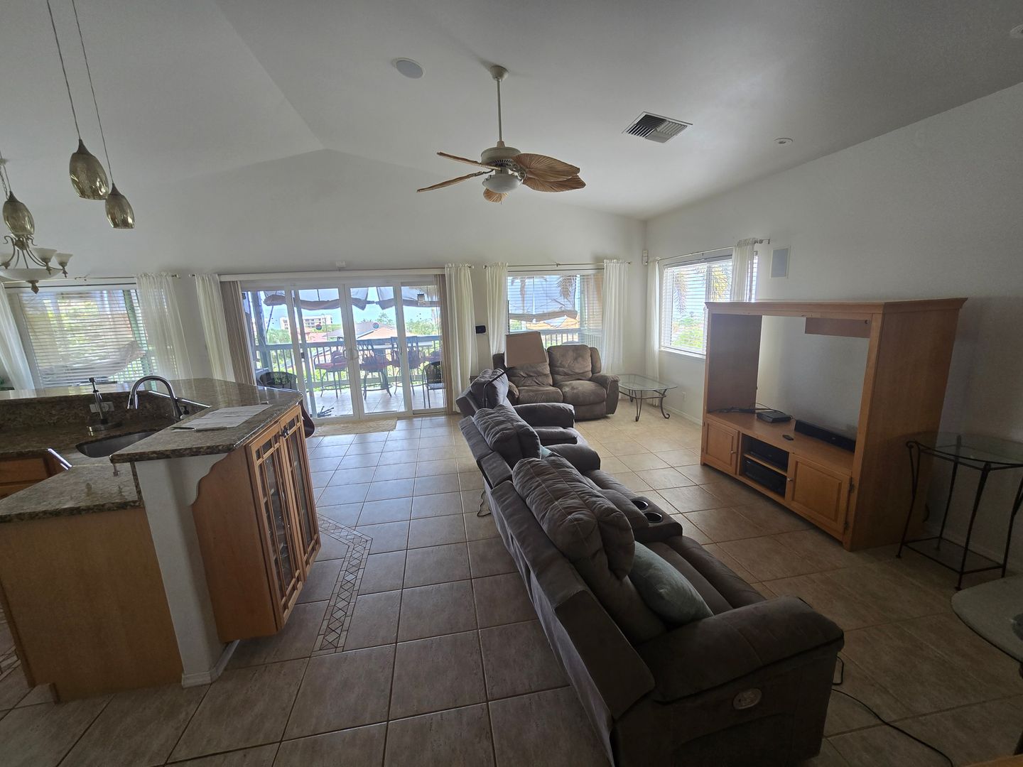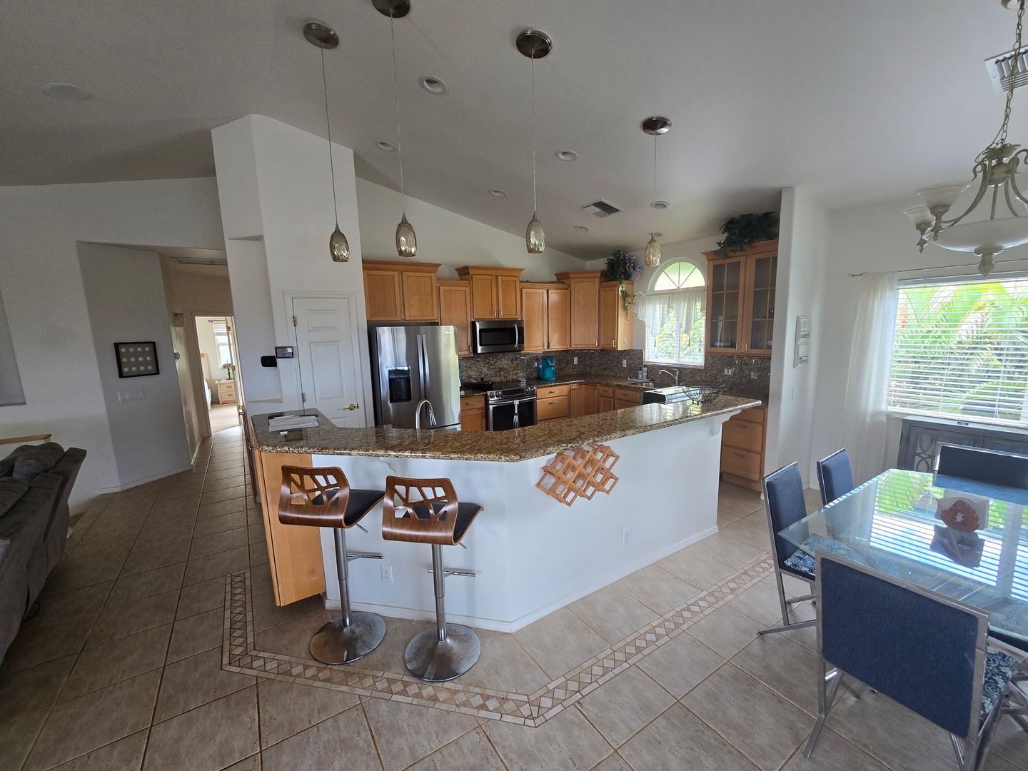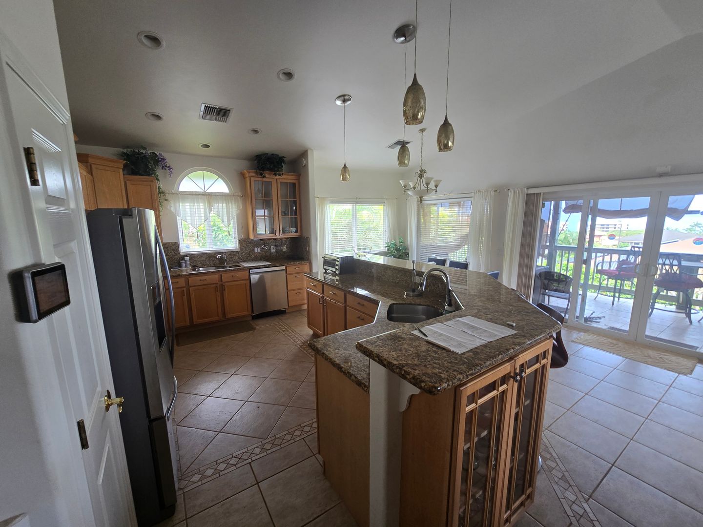 The open kitchen is perfect for everyday living and entertaining, featuring granite countertops, stainless steel appliances, and ample cabinetry, all positioned to take advantage of the ocean view.