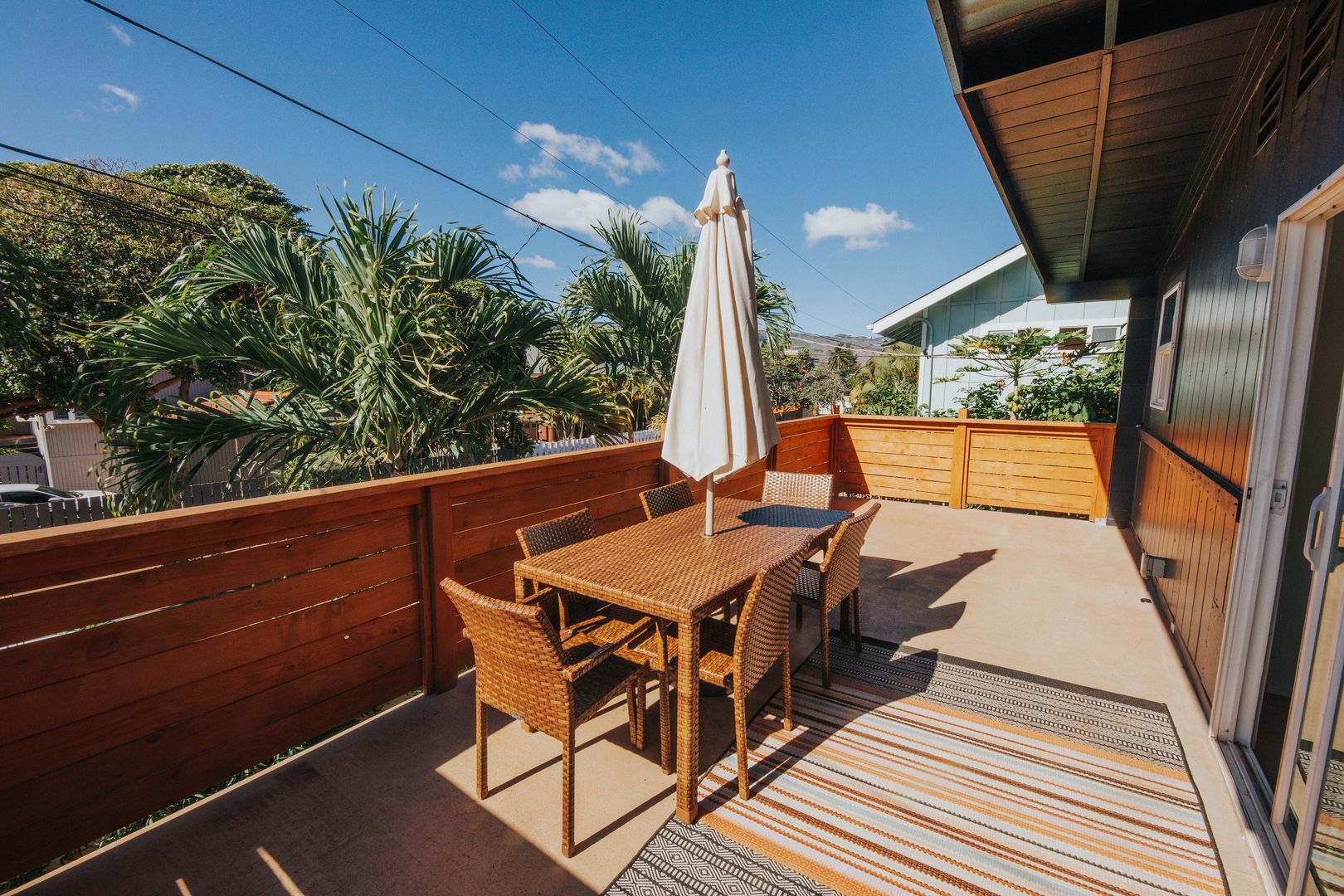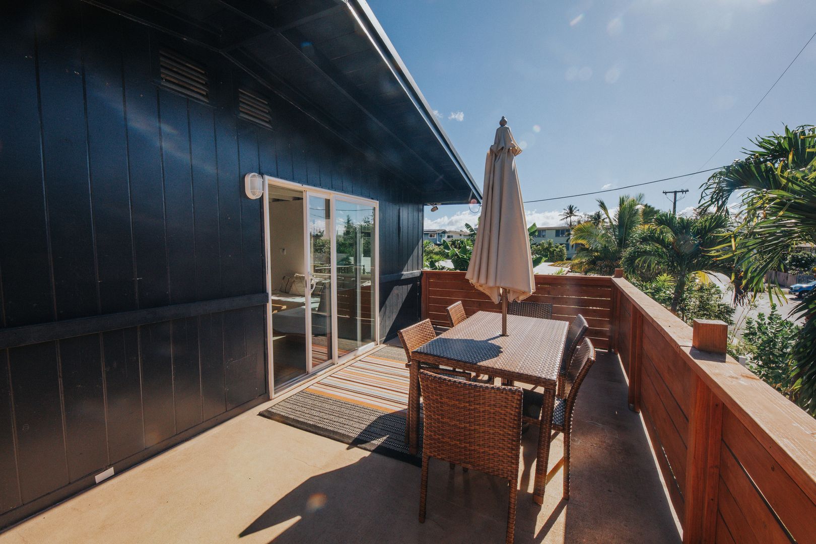 Outside, you will find a large shower, soaking tub, sauna, BBQ, communal table, and shaded board rack in the backyard. The building features a mural by Artist Velia Di Iuliis. Papaya, banana, coconut, and passionfruit can be found growing throughout the property. It is only a 2-minute walk to the beach. One block away is the bike path that connects to Haleiwa Town.