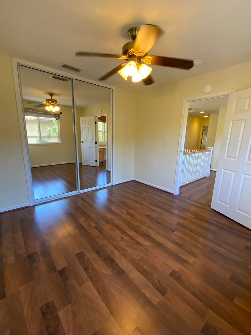 This home features 2 main bedrooms ensuite with walk-in closets and full bathrooms. One is on the first floor and one on the second floor with its own exit. The front patio allows visits with neighbors. You can entertain in the Great Room, an open-flow room combo of kitchen/living/dining room and back patio with the guest bath rm nearby. Or you can shut out everyone and have a quiet, intimate dining experience on the back patio. A laundry room has a full-sized washer/dryer and shelves for all laundry needs. The garage has overhead storage space for surfboards, paddleboards, and sports equipment.