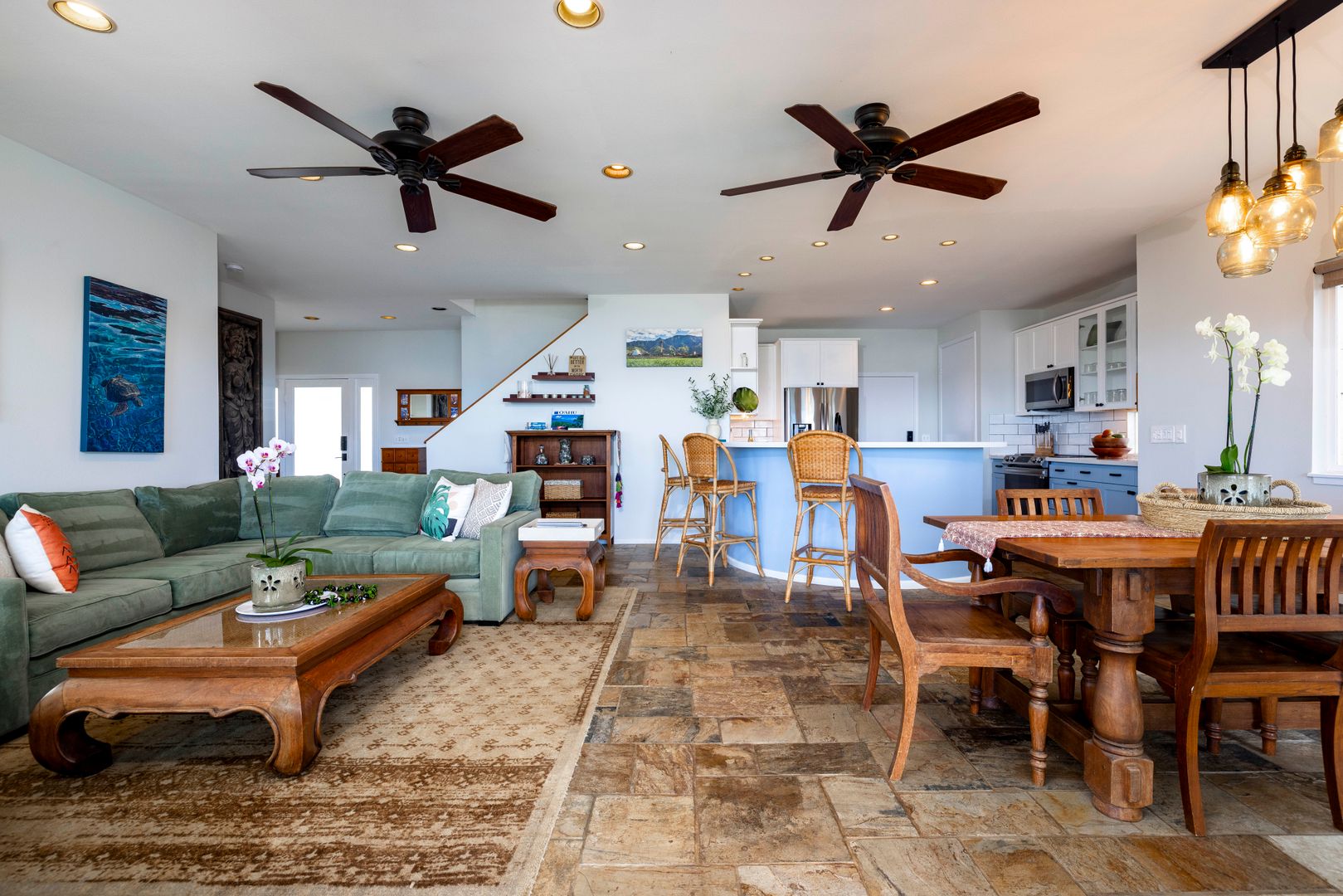 With two oceanfront living areas, and two Master Suites w/A/C, an ample modern kitchen with all the amenities, a family dining area, and an expansive oceanfront lanai, this custom built luxury home has plenty of space to kick back and enjoy the fabulous surroundings.
