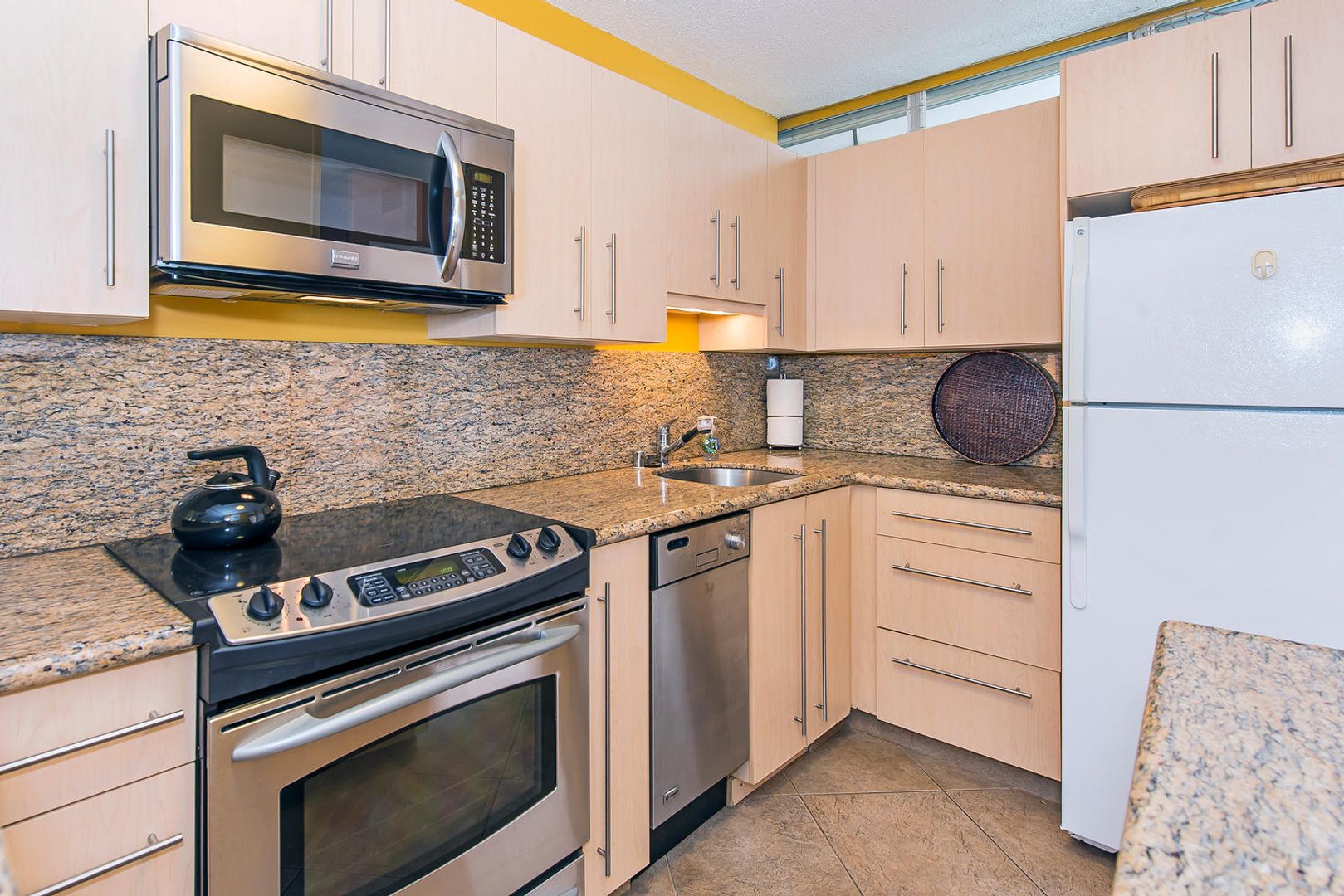 Nestled on Kaimana Beach, fully furnished two bedroom/two bathroom in Sans Souci is just steps away from the ocean. The unit boasts a complete kitchen and offers wifi & cable for your convenience. Enjoy the proximity to the renowned restaurant Hau Tree, located at the Seaside eatery, where creative Pacific Rim fare and brunch are served at the New Otani Kaimana Beach Hotel.