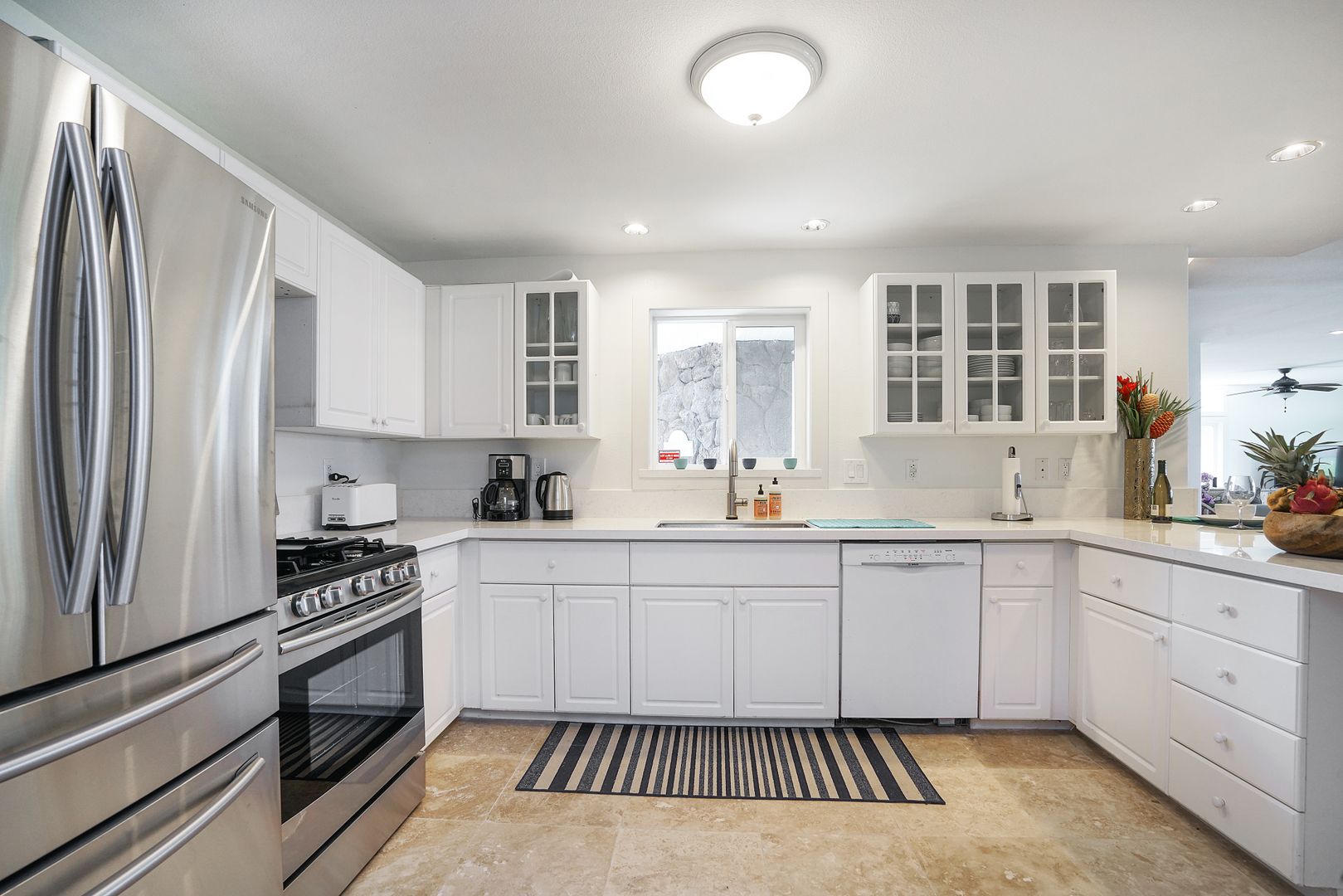 The two separate kitchen and dining areas, one on each level, and three separate living areas (2 with flat screen TV), make the home ideal for multi-generational family vacations, or even a couple's trip. The large layout creates inviting nooks great for privacy when traveling with other couples or large families. Make your morning coffee or enjoy an ocean view breakfast before joining your travel-mates for the day.